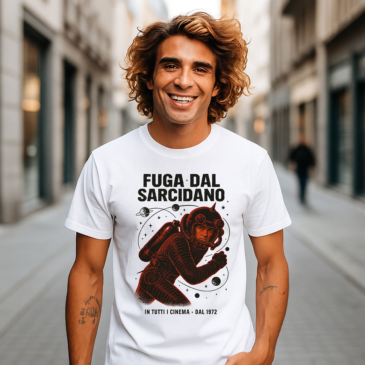 T-Shirt Fuga dal Sarcidano, ideale per dare un tocco originale al tuo outfit o per un regalo non convenzionale. 🌟