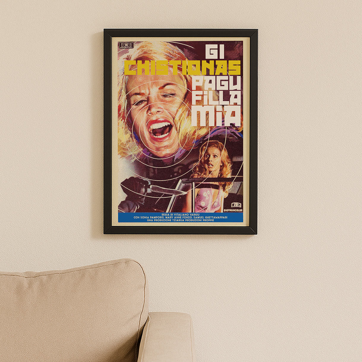 Porta aria nuova sulle pareti con Gi Chistionas Pagu 🖼️✨. Grafica curata e resa brillante: aggiunge carattere senza appesantire, sta bene in salotto, studio o dietro il bancone. Si integra con arredi minimal o più eclettici, ed è perfetta come idea regalo 🎁 per chi ama oggetti con personalità.